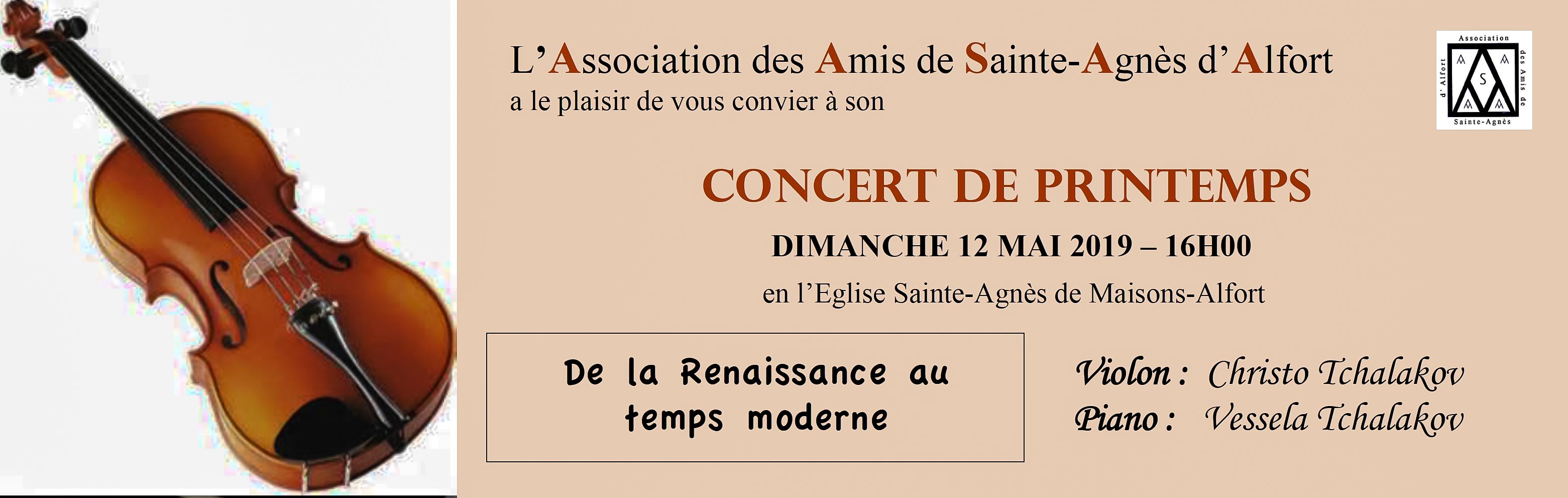 Le dimanche 12 mai 2019 à 16h00, en l’Eglise Sainte-Agnès de Maisons-Alfort.